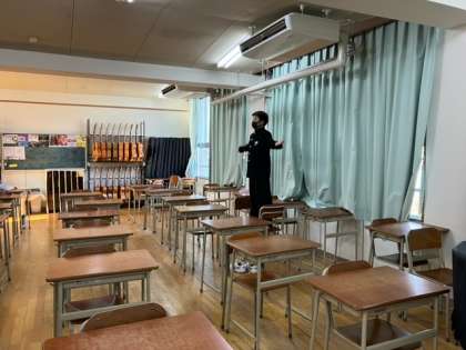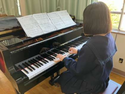校内に綺麗な歌声が響き渡り、音楽室に行くと1年3組の生徒たちが歌っていました。他の教室や体育館でも各クラスで練習していました。