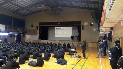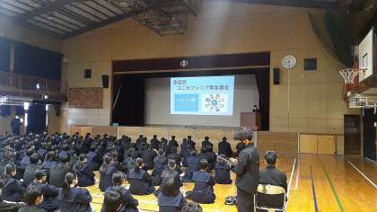本日の全校集会は、生徒会による募金活動の発表がありました。