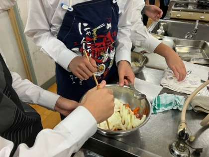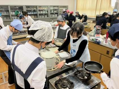 家庭科の授業ではコロナ感染対策を万全にして調理実習をしています。