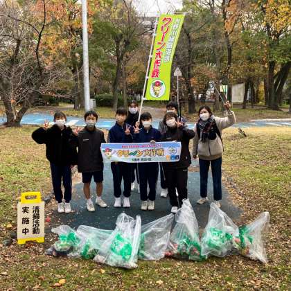 11日(日)、生徒会は『西淀川区緑陰道路クリ〜ン大作戦』に参加し、緑陰道路で清掃活動を行いました。