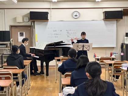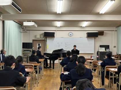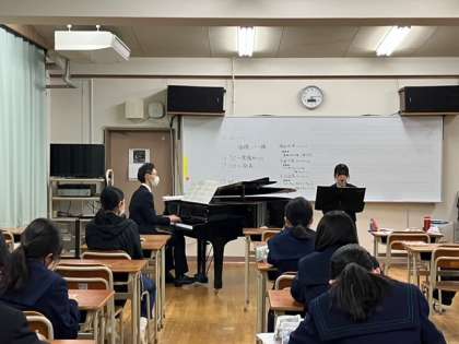 今日は17時から2年生3人のソロコンテスト出場者の発表会がありました。多くの先生が集まり、緊張の中、演奏をしました。