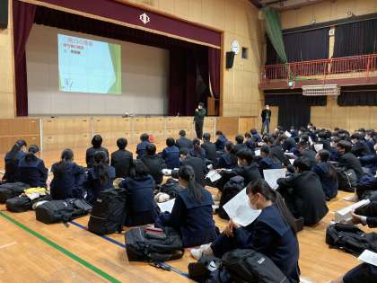 先日、私立高校入試がありました。 前日の9日には、 体育館で全体事前指導を行いました。