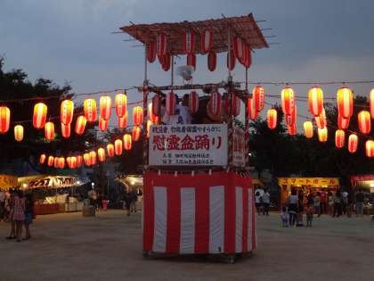 昨日の10日(日)より佃慰霊盆踊りが始まりました。昨日より3日間あり、昨日は、戦没者と物故者の方々の慰霊祭が18:30より執り行われました。そのあと、盆踊りが始まりました。