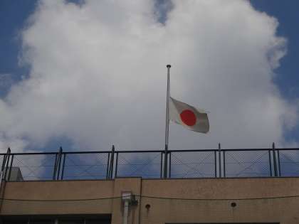 今日は、終戦記念日で、全国戦没者追悼式が行われます。学校も国旗を半旗掲揚しています。