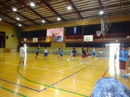 先週の土曜日に、本校の体育館でバスケットボールの男子4ブロック選抜の練習会が行われていました。午前中に本校の男女バスケットボールが練習をし、午後から練習をしていました。
