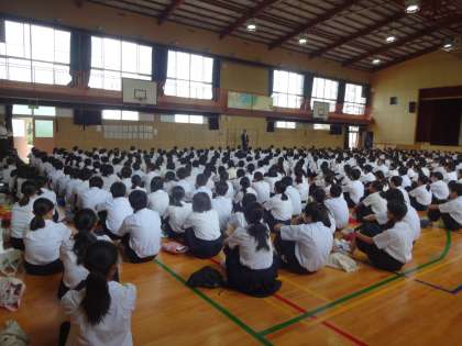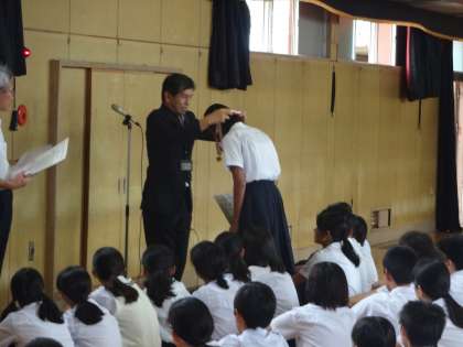 校長から、「クラブや学習など一生懸命頑張った生徒もいますが、残念ながら、親や地域、関係諸機関の方々にご迷惑をかけた事もありました。2学期にこれらのことを取り返そう」という話がありました。