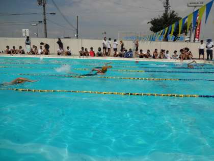 いろいろな競技をしました。1年生が一丸となり、泳いでいる生徒も見ている生徒も協力し、楽しみ大変盛り上がりました。