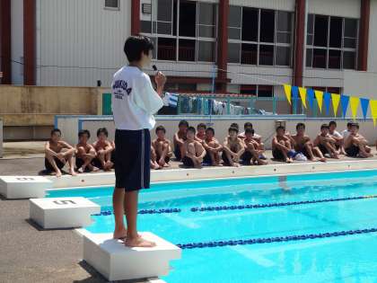 特に、よかったことは、最後まで泳いでいる友達に周りの生徒が一生懸命拍手をし応援したことです。1年生の生徒の暖かさをたくさん感じた大会でした。