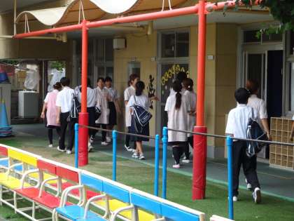 受け入れ事業所は全部で50か所あり、2人以上のグループに分かれています。あいさつ時には緊張した様子もうかがえました。子どもたちが将来の自分について「働くことの大切さ」「働くことの重要さ」を考える一歩を踏み出しました。