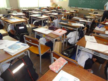 本日の11:00に「大阪880万人訓練」がありました。本校は左門殿川と神崎川に挟まれており、地震・津波に対しては減災のことを考えておかなければなりません。