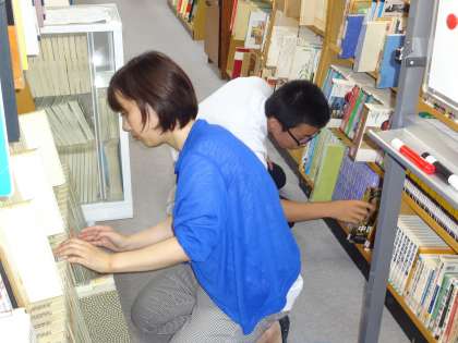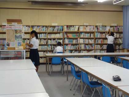 放課後、図書館コーディネーターの方に来ていただき、2年生の文化委員と担当の先生で図書室の本の冊数を数えました。