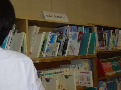 10冊ごとに本を横にして、後で10の束を数えていく方法も教えていただきました。図書室には、なんと約8,000冊の本があることがわかりました。