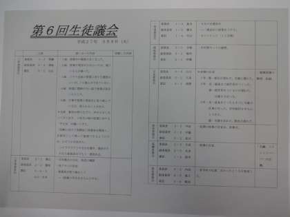 昨日、前期最後の生徒議会がありました。今年度の半年間の反省やできたことなどを各担当の委員長から報告がありました。