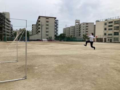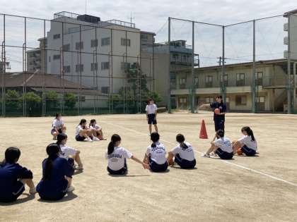先週から教育実習生の先生方が授業をしています。写真は3年生のハンドボールの授業の様子です。