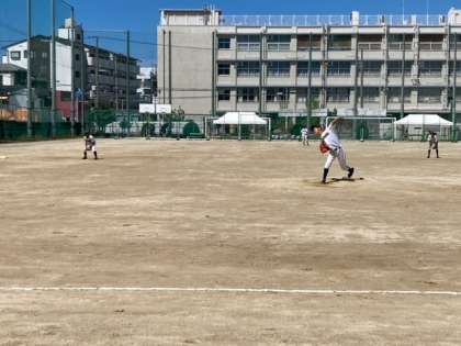 8月26日(土)、大阪市秋季総体の1回戦が行われ、8−1で勝利しました。この日は打線が繋がりを見せ、エース投手は快投。そしてベンチからも元気な声が出て、良い雰囲気の中で試合ができました。