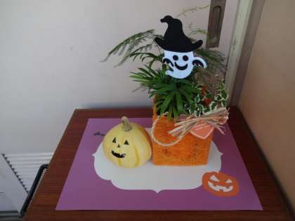 そこで校長室前もハロウィーンを楽しもうと少しだけ飾りつけをしました。来校の時、一度見てください。