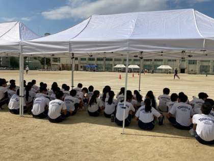 体育大会の予行が行われました。2日後の本番に向けて、流れの確認や係の仕事の確認を行いました。