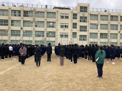 火災を想定した避難訓練が行われました。各学級の委員長を中心に、全員が高い意識をもって取り組めていました。