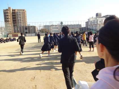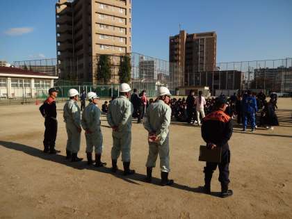 本日の6限に避難訓練を行いました。この訓練に西淀川消防署と地域の防災リーダーの方も来ていただきました。