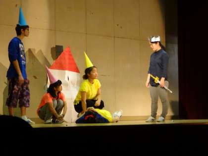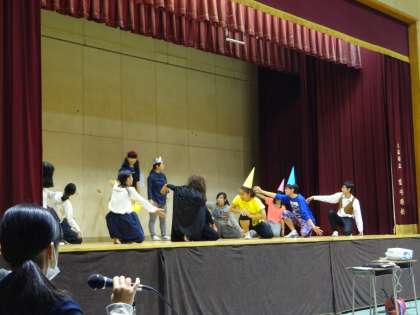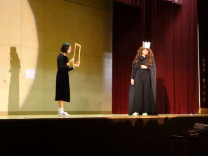 本日はESSの英語劇「SNOW WHITE」です。ESSのクラブの皆さんが、勿論と思われるかもしれませんが、全て英語で劇を構成していました。ナレーションも英語でした。もちろん役者の皆さんも英語で身振りもつけ表現豊かに劇を行ってくれました。中にはとても長いセリフもあり、それをいとも簡単に、すらすらと英語で表現していました。