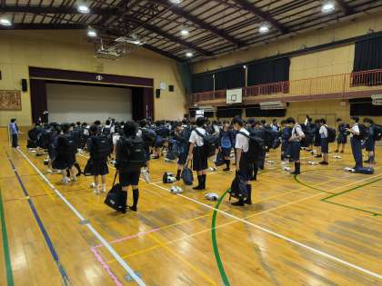 16時8分、1年生は大きな怪我なく、無事に学校に到着し、帰校式が行われ、全ての行程が終了しました。お世話になったすべての皆様、本当にありがとうございました。
