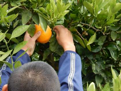 本日は天候も何とか持ち、1年生はミカン狩りとイモ堀を楽しみました。