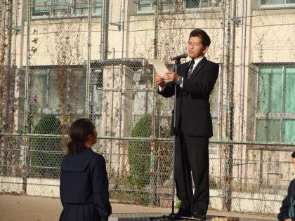 昨日、雨や3年生英語能力検定テストなどでできなかった朝礼を久しぶりにしました。