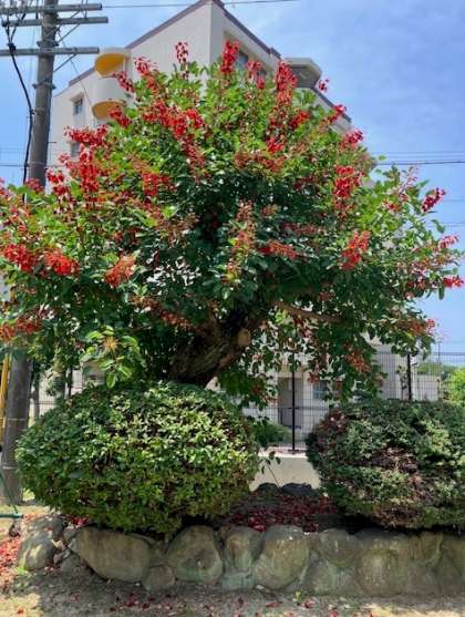 沖縄のイメージが強い花ですが、暑くなってきて満開に咲いています。