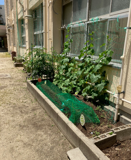 特別支援学級で育てている作物もぐんぐん成長しています。