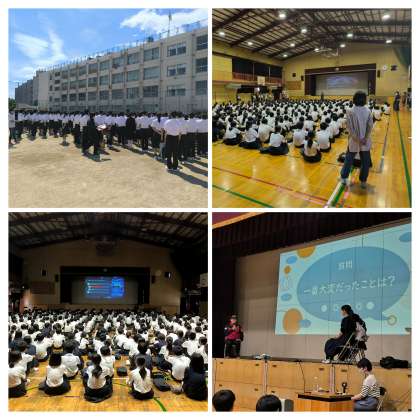 本日の6限目に避難訓練を行い、その後、消防署と西淀川区役所を講師に招き、消防の講話と能登半島地震、佃地域の防災についてのお話がありました。
