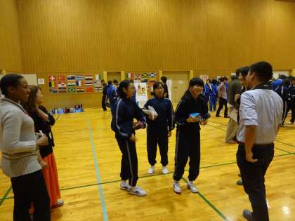5日の土曜日に城東スポーツセンターで英語イノベーション事業のひとつであるイングリッシュデイが行われました。大阪市のC−NETの方が、それぞれ自国の遊びや特徴を英語を通して参加している生徒と交流を持ちます。本校に来ていただいているクレア先生もおられました。