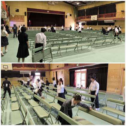本日の放課後に、明日行われる文化発表会の準備に取り掛かりました。会場設営だけでなく、学級委員や教科係に入っている生徒たちが展示の準備にかかっていました。