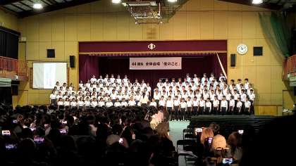 3年生は、全体合唱「僕のこと」を披露しました。3ヶ月もの間、練習する時間は限られてましたが、今日この日のために一生懸命練習してきました。ソプラノ、アルト、男声パート共にとても素晴らしい歌唱力で、1,2年生、保護者の皆様に感動を届けてくれました。