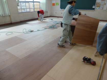 3−1と3−2の2教室が歩いた時に床のきしむ音があちらこちらであったため、昨日より補修工事をしました。明日からきれいな教室で学習ができます。