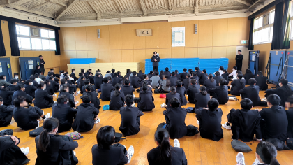 終業式の前に、それぞれの学年で2学期最後の集会を開きました。内容は、冬休みに向けて健康面、学習面、生活面についてのお話がありました。