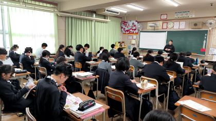 国語の授業では、後日行われる百人一首大会に向けて、1つ1つの短歌を頑張って覚えています。