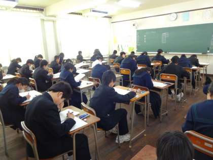 上の写真は1年生、下の写真は2年生のテスト中の様子です。みんな真剣に取り組んでいました。