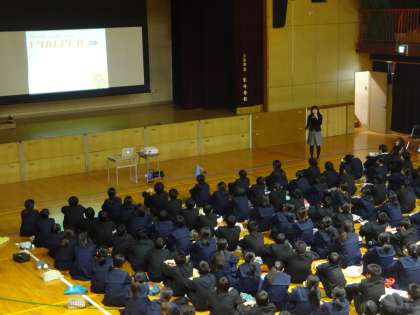 キャリア教育をコーディネートしているJAEの方に来校いただき、1年生がキャリア教育として、職業講話を開催しました。1時間という短い時間でしたが、ドリカムスクール(Dreams Come True)の説明と今後の職業講話について聞き、少しだけ自分の将来のことや夢のことを考える機会となりました。