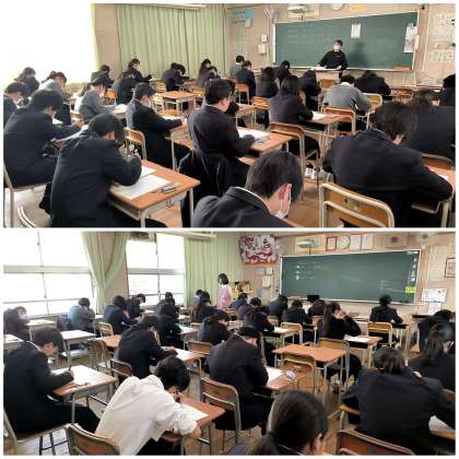 昨日から1,2年生は学年末テスト取り組んでいます。勉強した成果を発揮できるように頑張ってください。