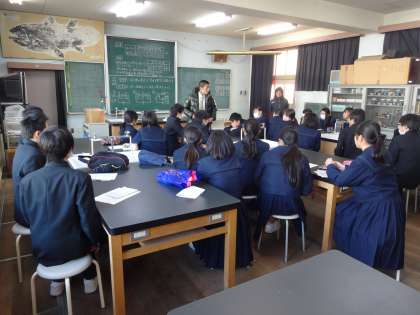 担当者から全体の指導と、プリントを使っての細かい指導、その後、出願する高校に分かれて、高等学校への行き方の確認をしたり代表生徒を決めたりしました。