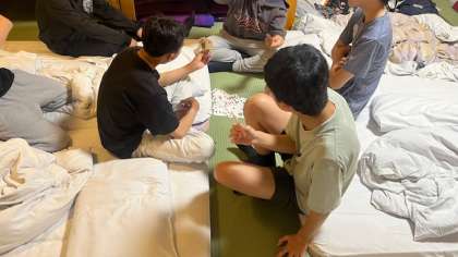 入浴、荷物整理を終え、各部屋それぞれの時間を楽しんでいます。さて、これからレクリエーションで1日を締めくくります。
