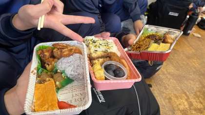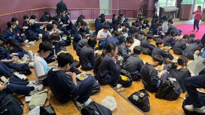 オリエンテーション前に腹ごしらえ、お弁当の時間です。保護者の皆様、早朝よりご準備ありがとうございました。