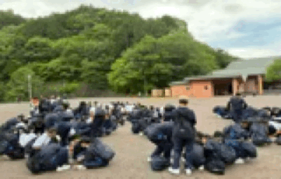 いよいよ、オリエンテーリングを開始します。 班でクロスワードを解いています。