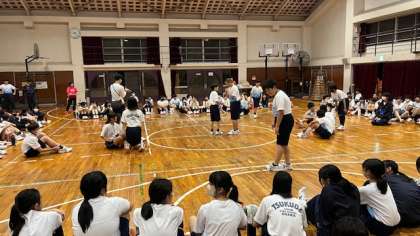 まずはフラフープくぐり、そしてジェスチャーゲームです。