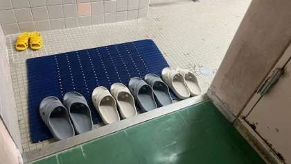さすが佃中生、使用後のトイレのスリッパも美しく揃えられています。