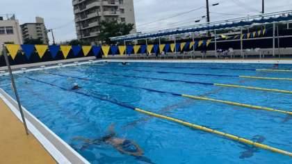 あいにくの雨模様でしたが、水泳部では晴れ間を縫って入水し、練習を行うことができました。