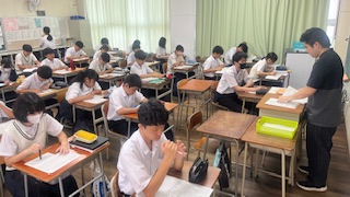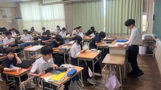 どの生徒も8時25分までに朝の準備を済ませ、8時30分には朝読書などの取組を開始することができています。昨日からテスト1週間となるので、程よい緊張感の中で学習を進めています。