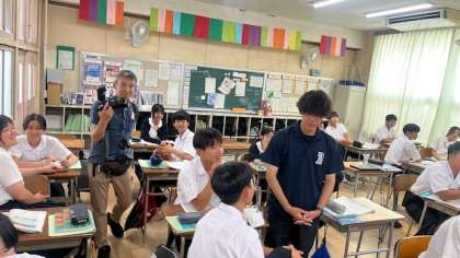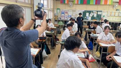 今日は写真屋さんが来られて、3年生の卒業アルバム作成に向けた授業風景をされています。普段どおり授業に集中している様子を写真に収めてもらいましょう。放課後には部活動写真の撮影があります。