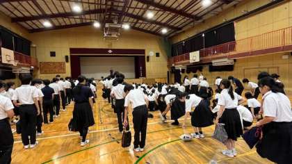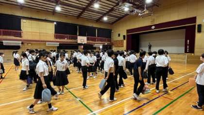 また、明日の避難訓練に向け、隊形確認が行われました。さすが2年生、校外学習を通じて班行動にも慣れてきましたね。班長さんの指示で、静かに行動することができました。