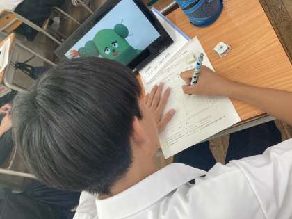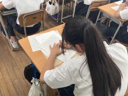 2学期の体育大会で用いる学級旗のデザインをそれぞれが考えています。明日が締め切りです。クラスを象徴する作品を描き、提出してくださいね。